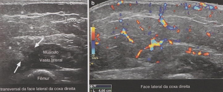 Estrutura de contornos mal definidos, ecotenicidad heterogênea que geralmente acomete a derme, a hipoderme e a camada muscular subjacente.