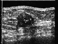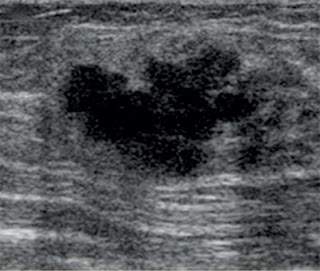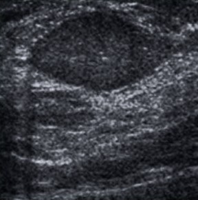 o Forma redonda e muito hipoecóico: nestes casos podemos fazer punção com agulha fina para excluir a possibilidade de cisto com conteúdo espesso.